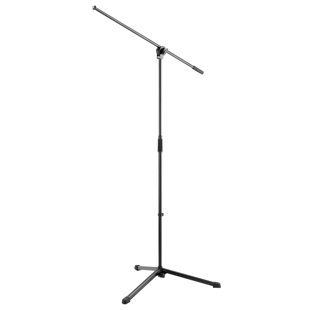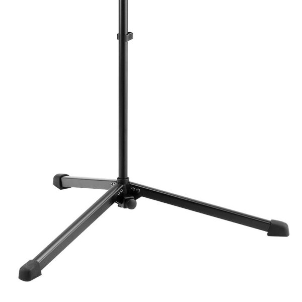 Soporte de micrófono básico de bajo precio. La práctica articulación giratoria permite que el brazo de la pluma de una pieza se posicione simultáneamente para la inclinación y la longitud. Gracias a su bajo peso de solo 1.84 kg, es particularmente adecuado para el músico móvil. El soporte requiere poco espacio ya que su diámetro base es de solo 660 mm. Las grandes tapas de los extremos del pie ayudan a estabilizar el soporte y a reducir el ruido de transmisión desagradable.