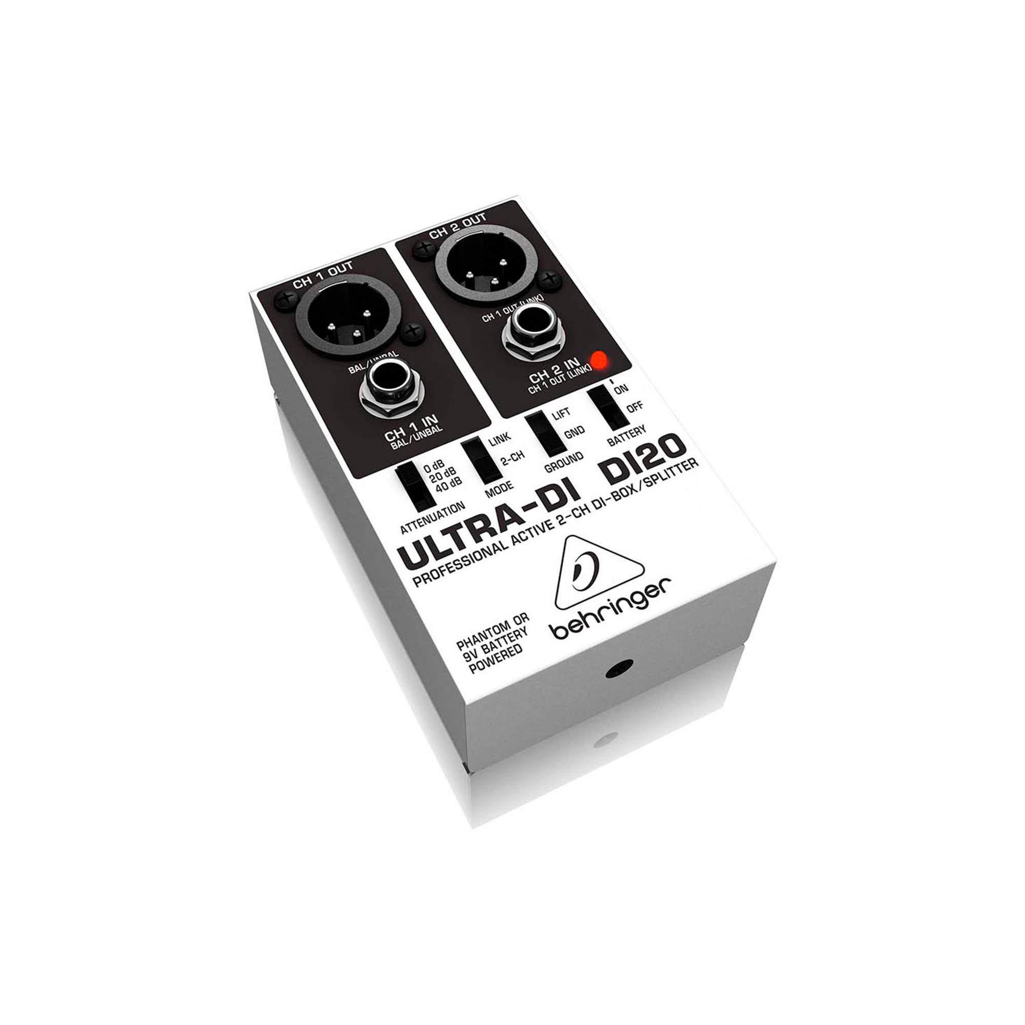 La DI20 también cuenta con un interruptor ground-lift y atenuador de entrada de 3 posiciones que puede adaptar niveles de señal de hasta 40 dB. La DI20 funciona con batería de 9V o a través del phantom power de tu mezcladora ( 48 V DC).
