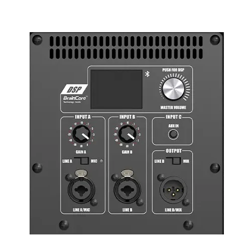 En su interior, el MA15+ incorpora la avanzada tecnología BrainCore™, que integra en un solo sistema el procesamiento digital de señal (DSP), el amplificador de potencia y el módulo de entrada de señal. Esta fusión inteligente permite optimizar la distribución de energía y maximizar la eficiencia del sistema, logrando un rendimiento de audio potente, nítido y estable incluso a altos niveles de presión sonora. Con BrainCore™, el altavoz se adapta dinámicamente a las condiciones de uso, garantizando una reproducción precisa y confiable tanto en aplicaciones musicales como de voz.