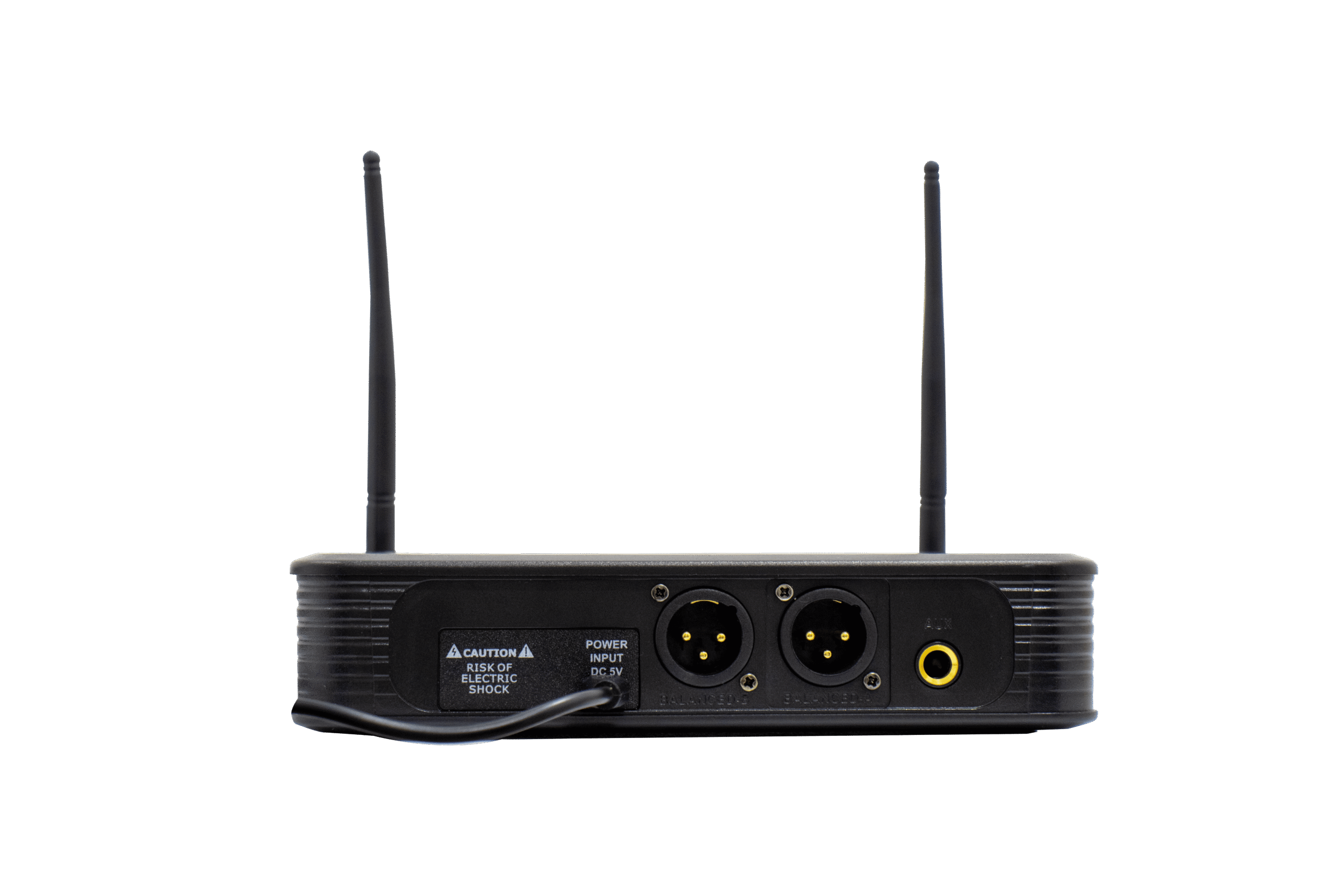 Este modelo en transmisión UHF (ultra high frecuency) de frecuencia fija, permite la carga eficiente y rápida de los micrófonos a travéz de conector USB, para lo cuál no tendremos problemas de baterías descargadas en shows, o experiencias desagradables similares, a un costo excepcional.